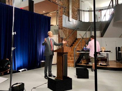 While crew setup, everyone wore masks. All of my lines were on a teleprompter, so when I first arrived on set, I stayed away from most of the people and asked the person running the prompter to give me a few opportunities to run my lines.